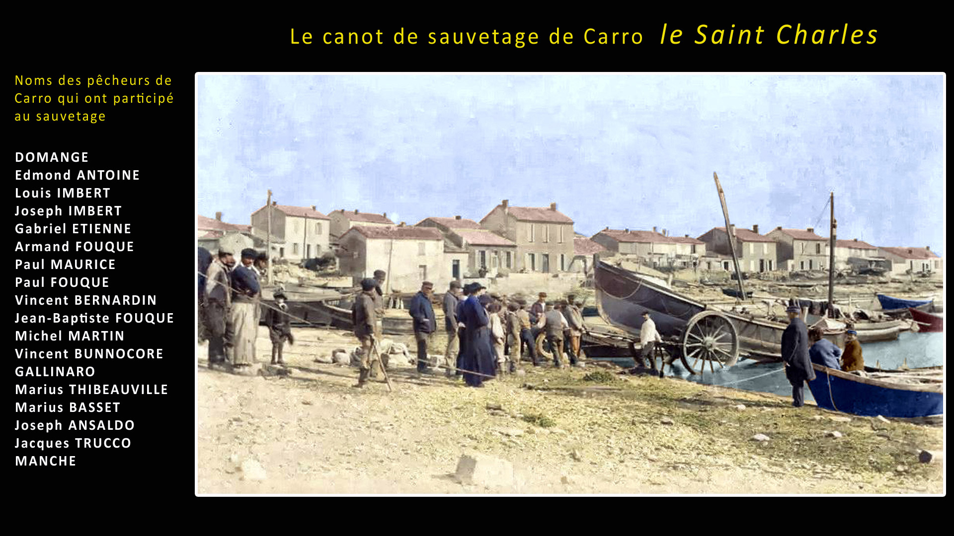 Cette photo, prise peu de temps après l’évènement, présente les protagonistes de ce périlleux sauvetage : François SELLIER, Henri SELLIER, Baptistin SELLIER, Marius MAXIMEN, Honorat AILLET, Joseph MANAUD, Baptistin TAILLET, Jean et Joseph BOISSET, Blaise CAILLET, Marius BOISSET et Jean FABRE.
